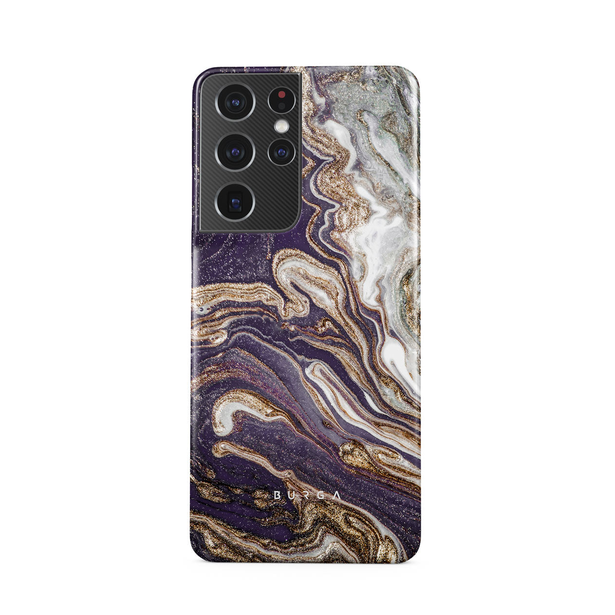 A classical yet stunning take on the marble trends meets in a Nostalgia Feeling Samsung Galaxy S21 Ultra phone case. The golden swirls accentuate the regal touch of the deep blue tones, creating a design that is guaranteed to transform your phone into a luxurious accessory.