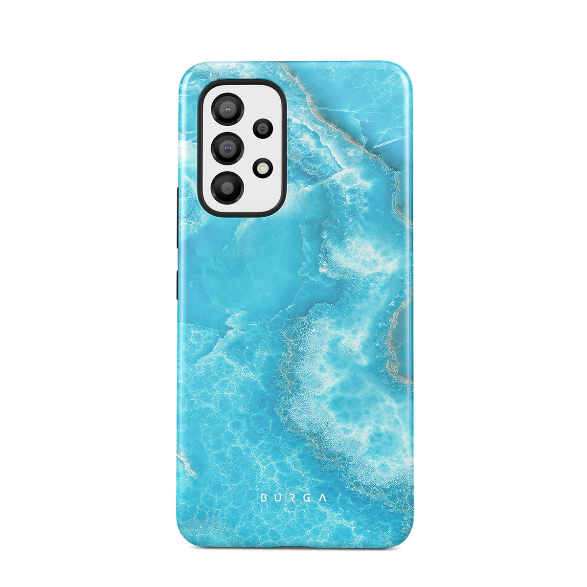 Waves keep crashing down, bringing out lost treasures to the shore. Maybe this one will have the message in the bottle? You may never know what lies in the deeps of the ocean, and our Ocean Waves Samsung Galaxy A33 phone case brings the mystery in a combination of a stunning blue color and marble pattern. Add protection and color to your phone.
