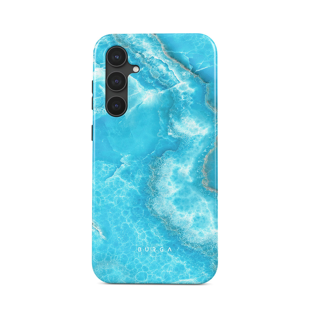 Waves keep crashing down, bringing out lost treasures to the shore. Maybe this one will have the message in the bottle? You may never know what lies in the deeps of the ocean, and our Ocean Waves Samsung Galaxy S23 FE phone case brings the mystery in a combination of a stunning blue color and marble pattern. Add protection and color to your phone.