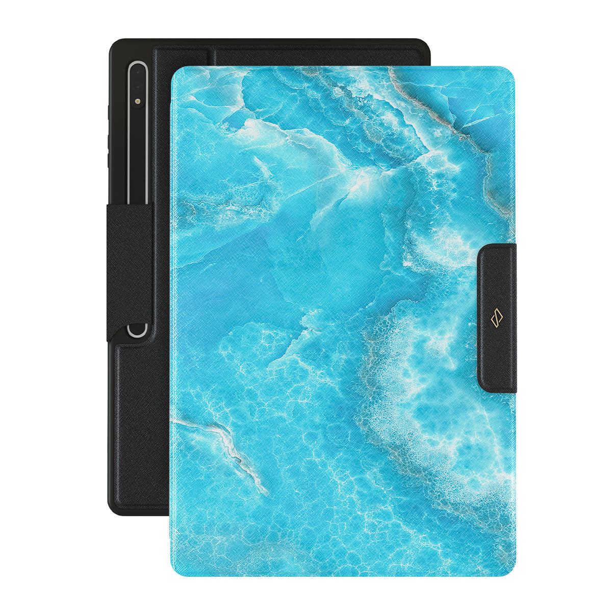 Waves keep crashing down, bringing out lost treasures to the shore. Maybe this one will have the message in the bottle? You may never know what lies in the deeps of the ocean, and our Ocean Waves Samsung Galaxy Tab S8 Ultra folio case brings the mystery in a combination of a stunning blue color and marble pattern. Add protection and color to your Galaxy Tab.