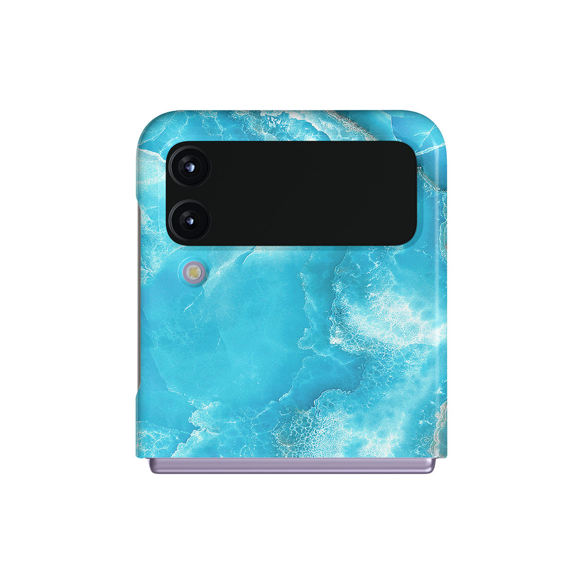 Waves keep crashing down, bringing out lost treasures to the shore. Maybe this one will have the message in the bottle? You may never know what lies in the deeps of the ocean, and our Ocean Waves Samsung Galaxy Z Flip 4 phone case brings the mystery in a combination of a stunning blue color and marble pattern. Add protection and color to your phone.