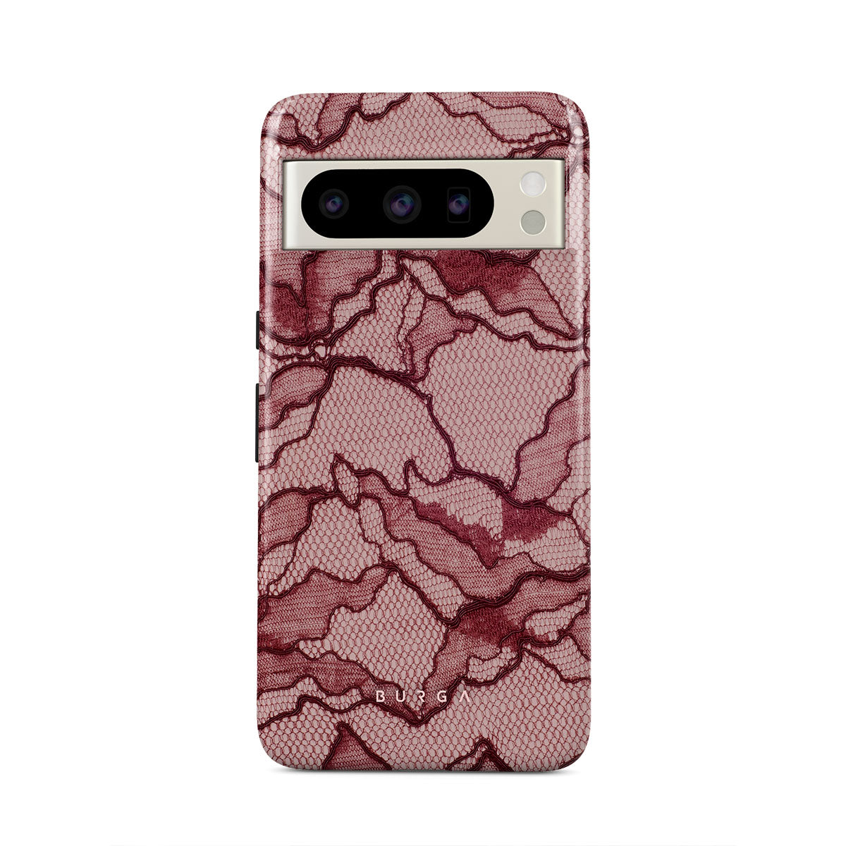 Channel your inner power with our Office Siren Google Pixel 8 Pro phone case design. A soft rosé backdrop and dark pink lace blend elegance and boldness, perfect for those who make quiet yet undeniable statements with confidence.