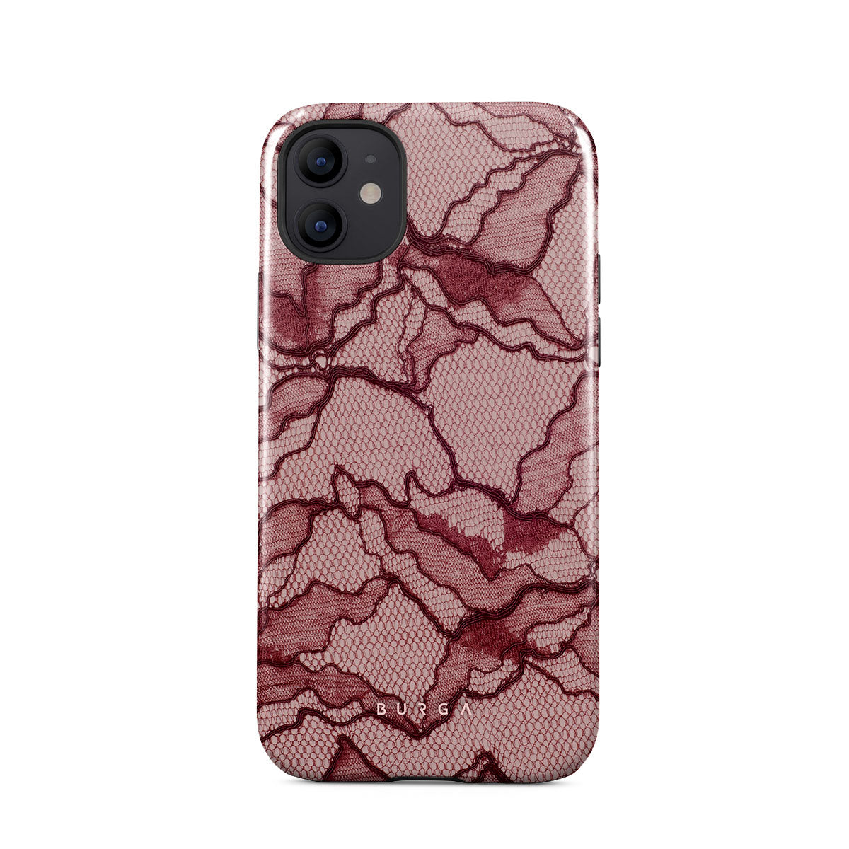 Channel your inner power with our Office Siren iPhone 12 phone case design. A soft rosé backdrop and dark pink lace blend elegance and boldness, perfect for those who make quiet yet undeniable statements with confidence.