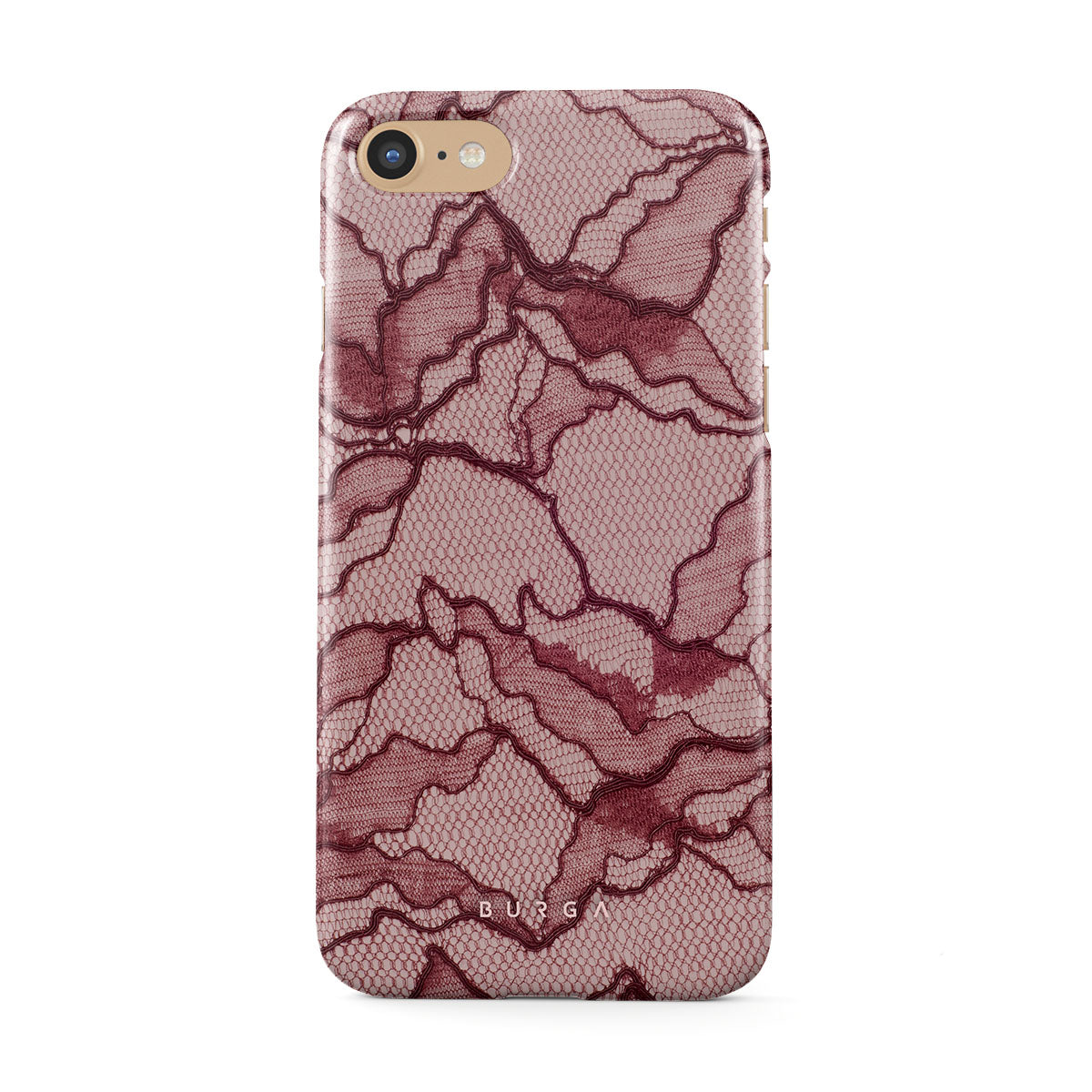 Channel your inner power with our Office Siren iPhone SE (2022) phone case design. A soft rosé backdrop and dark pink lace blend elegance and boldness, perfect for those who make quiet yet undeniable statements with confidence.