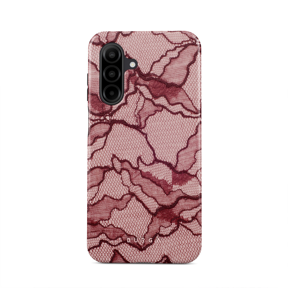 Channel your inner power with our Office Siren Samsung Galaxy A26 5G phone case design. A soft rosé backdrop and dark pink lace blend elegance and boldness, perfect for those who make quiet yet undeniable statements with confidence.