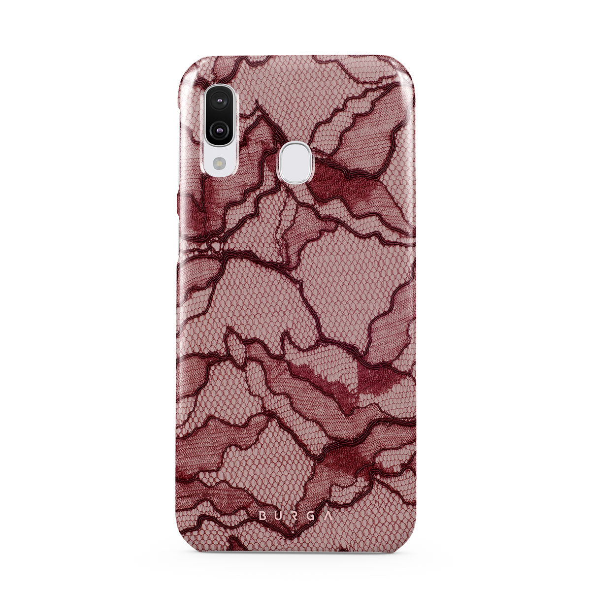Channel your inner power with our Office Siren Samsung Galaxy A40 phone case design. A soft rosé backdrop and dark pink lace blend elegance and boldness, perfect for those who make quiet yet undeniable statements with confidence.