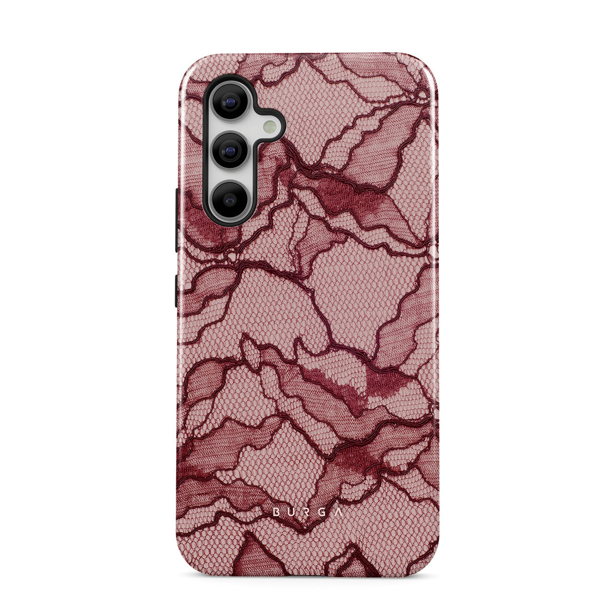 Channel your inner power with our Office Siren Samsung Galaxy A54 phone case design. A soft rosé backdrop and dark pink lace blend elegance and boldness, perfect for those who make quiet yet undeniable statements with confidence.