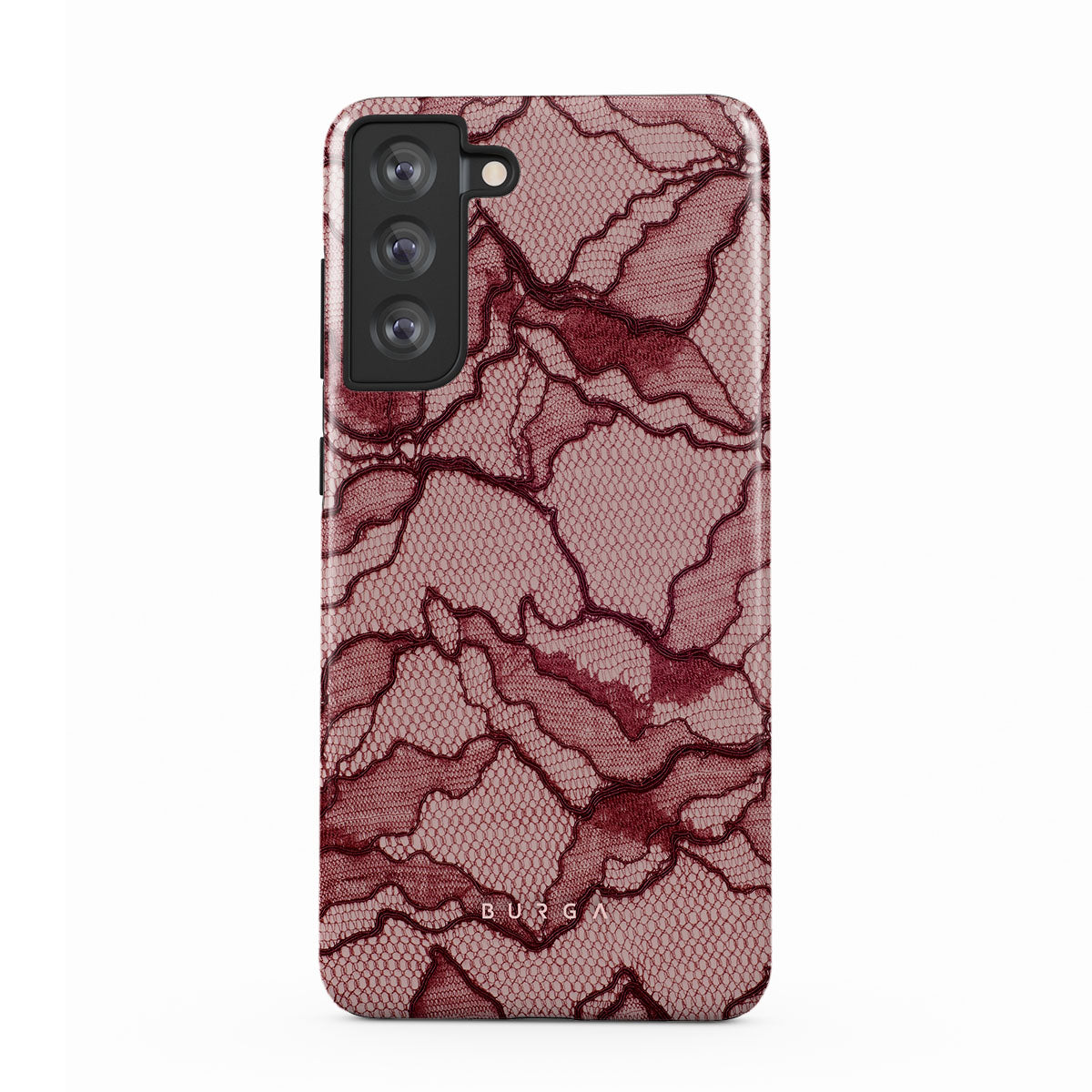 Channel your inner power with our Office Siren Samsung Galaxy S21 FE phone case design. A soft rosé backdrop and dark pink lace blend elegance and boldness, perfect for those who make quiet yet undeniable statements with confidence.