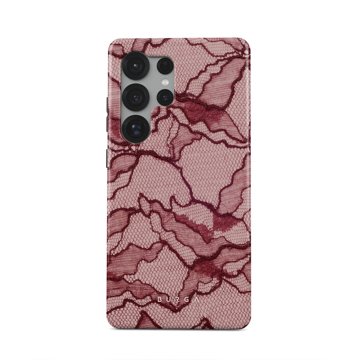Channel your inner power with our Office Siren Samsung Galaxy S25 Ultra phone case design. A soft rosé backdrop and dark pink lace blend elegance and boldness, perfect for those who make quiet yet undeniable statements with confidence.