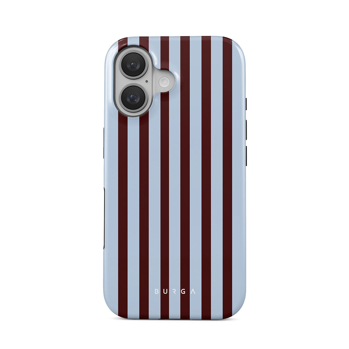Brown, blue, and emotionally unavailable. This striped iPhone 16 Plus phone case design says, “I turned off my Slack notifications and found inner peace.” Or at least a cute aesthetic.