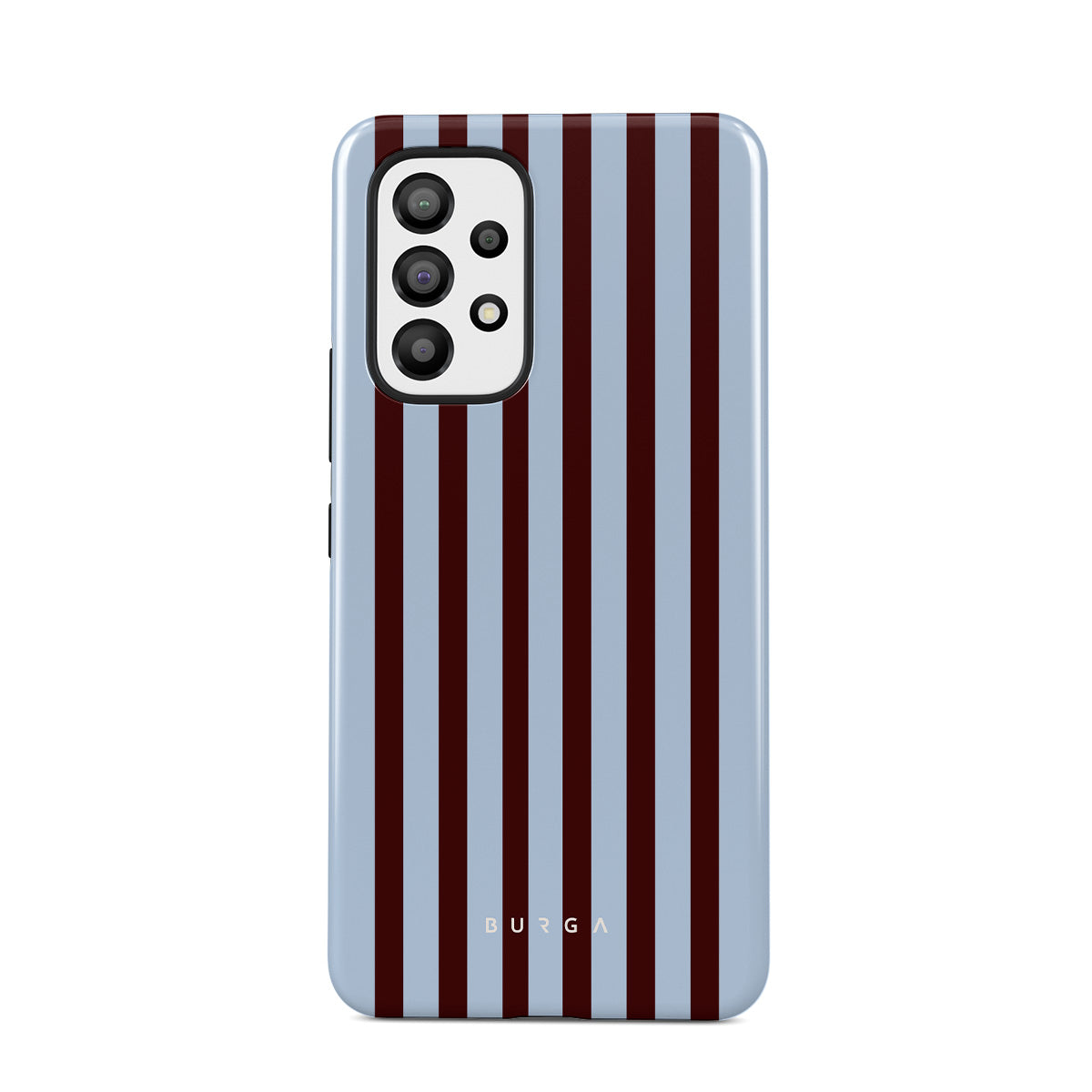 Brown, blue, and emotionally unavailable. This striped Samsung Galaxy A23 4G / 5G phone case design says, “I turned off my Slack notifications and found inner peace.” Or at least a cute aesthetic.
