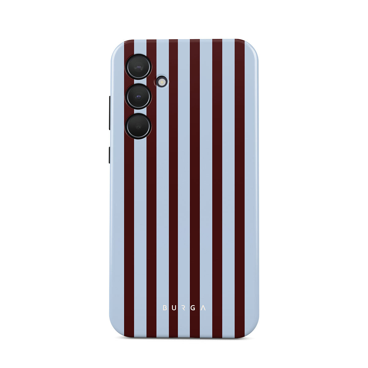 Brown, blue, and emotionally unavailable. This striped Samsung Galaxy A35 phone case design says, “I turned off my Slack notifications and found inner peace.” Or at least a cute aesthetic.