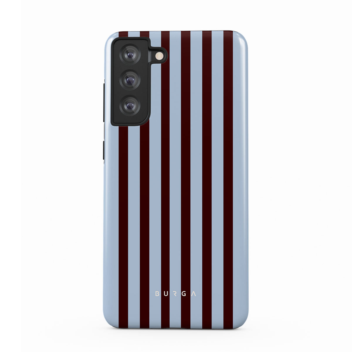 Brown, blue, and emotionally unavailable. This striped Samsung Galaxy S21 FE phone case design says, “I turned off my Slack notifications and found inner peace.” Or at least a cute aesthetic.