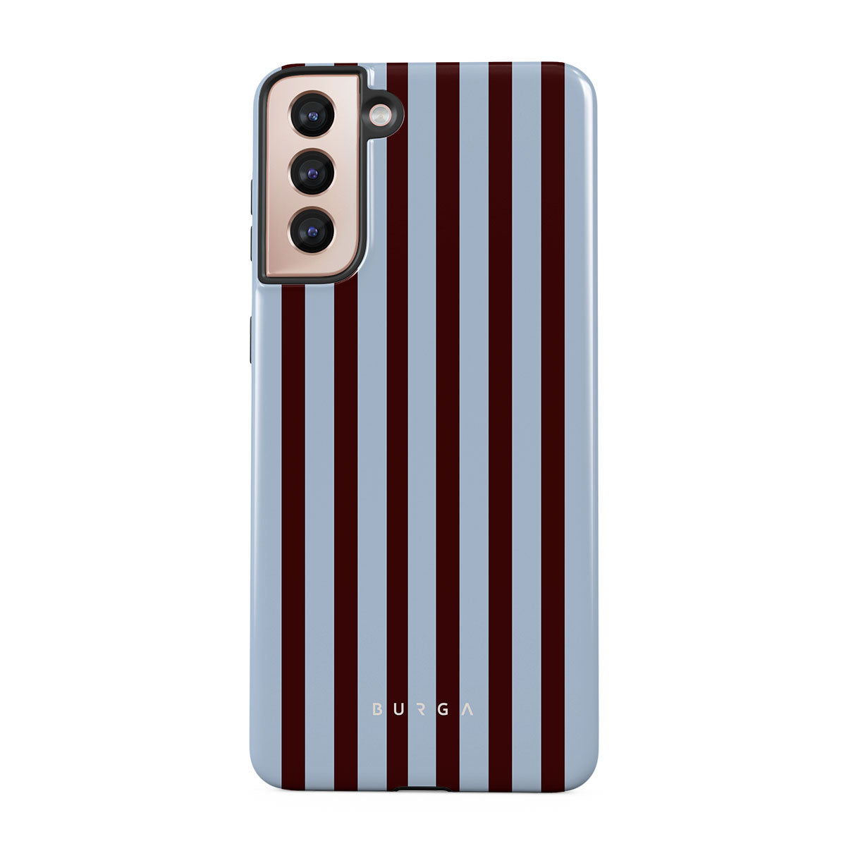Brown, blue, and emotionally unavailable. This striped Samsung Galaxy S21 Plus phone case design says, “I turned off my Slack notifications and found inner peace.” Or at least a cute aesthetic.