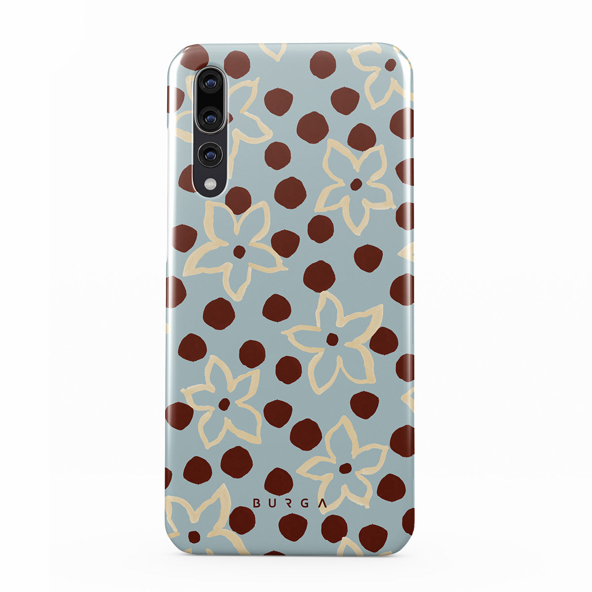 The Frutaria Huawei P20 phone case design design: retro surf motel wallpaper meets vintage ceramics. The soft florals, earthy dots, and cool-toned palette give major “forgotten seaside town in the ‘70s” energy.