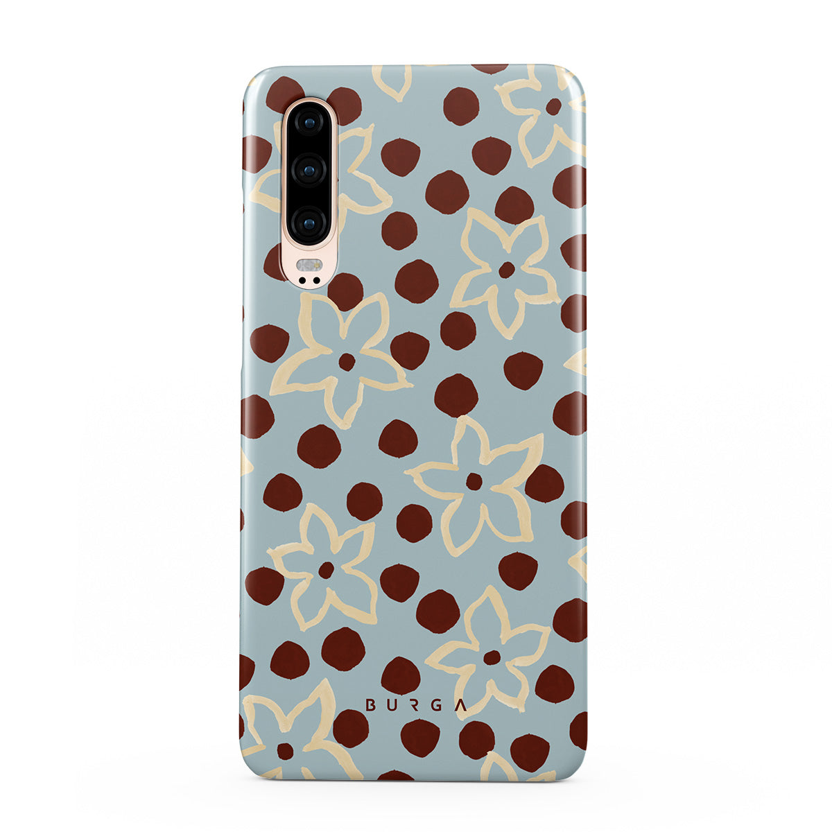The Frutaria Huawei P30 phone case design design: retro surf motel wallpaper meets vintage ceramics. The soft florals, earthy dots, and cool-toned palette give major “forgotten seaside town in the ‘70s” energy.