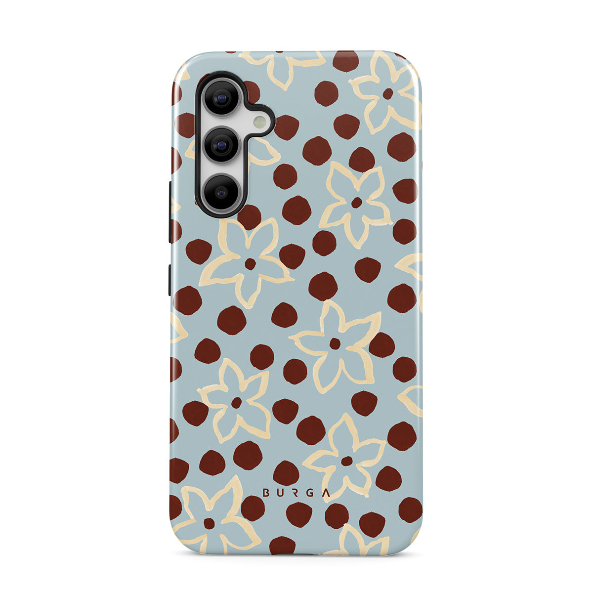 The Frutaria Samsung Galaxy A54 phone case design design: retro surf motel wallpaper meets vintage ceramics. The soft florals, earthy dots, and cool-toned palette give major “forgotten seaside town in the ‘70s” energy.