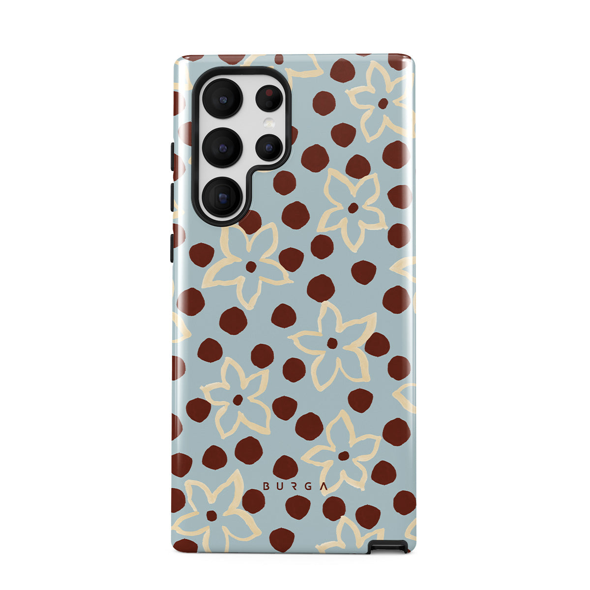 The Frutaria Samsung Galaxy S22 Ultra phone case design design: retro surf motel wallpaper meets vintage ceramics. The soft florals, earthy dots, and cool-toned palette give major “forgotten seaside town in the ‘70s” energy.