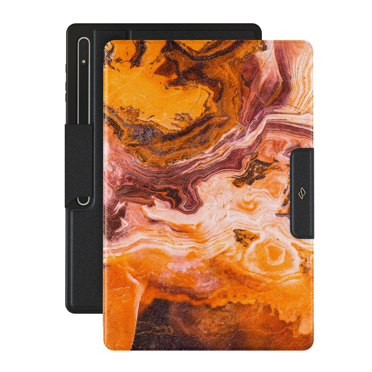 Sugar, spice, and everything nice. Add brightness to your everyday moments with a pretty orange marble Samsung Galaxy Tab S8 Ultra folio case. Your style deserves a pop of color, and a Pumpkin Spice Galaxy Tab case cover is the best way to add it without any hassle.