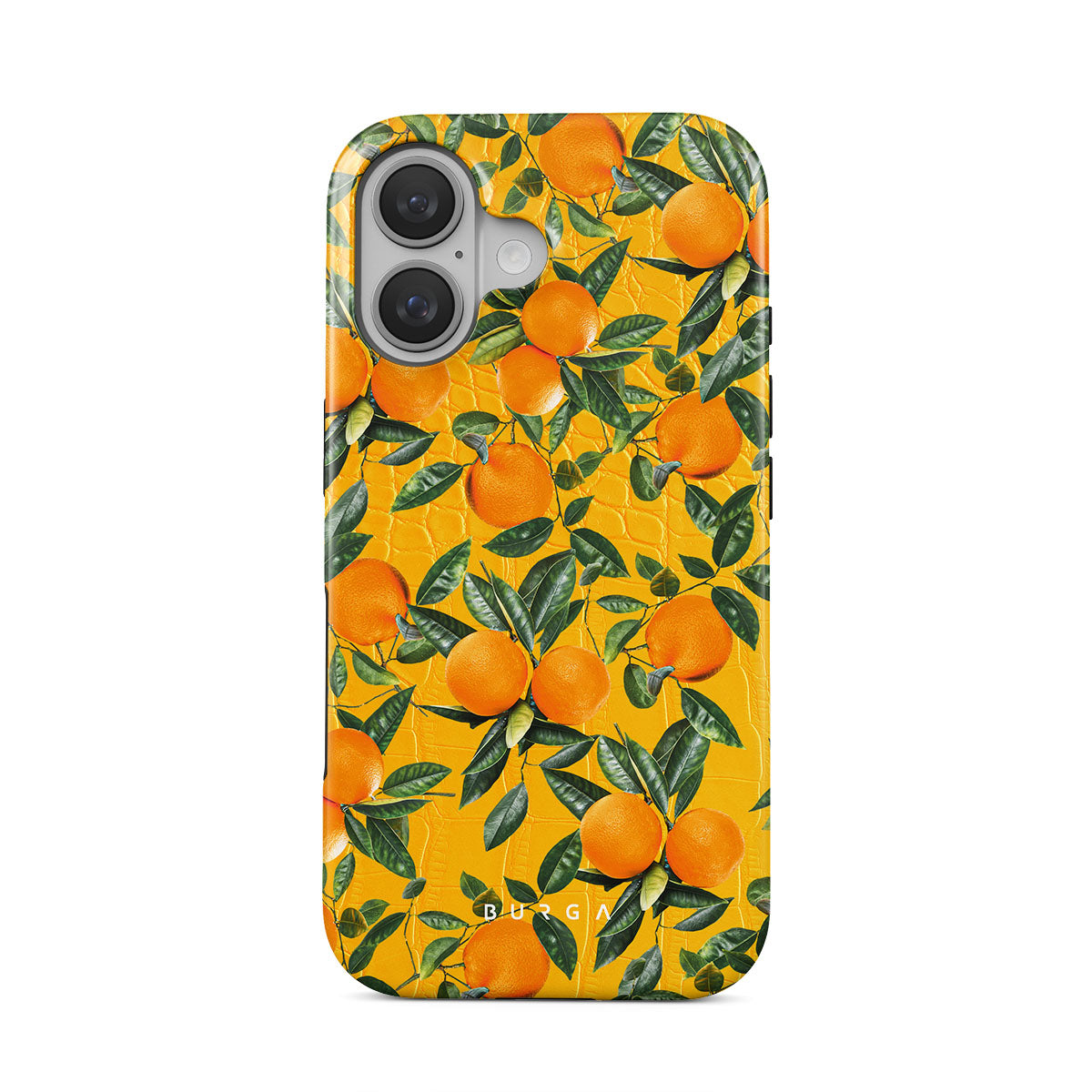 Orange Lemonade iPhone 16 phone case showcases a unique combination of vibrant orange croco design with plenty of mouth-watering oranges on top. With this energetic design, protect your phone and keep your spirits up.