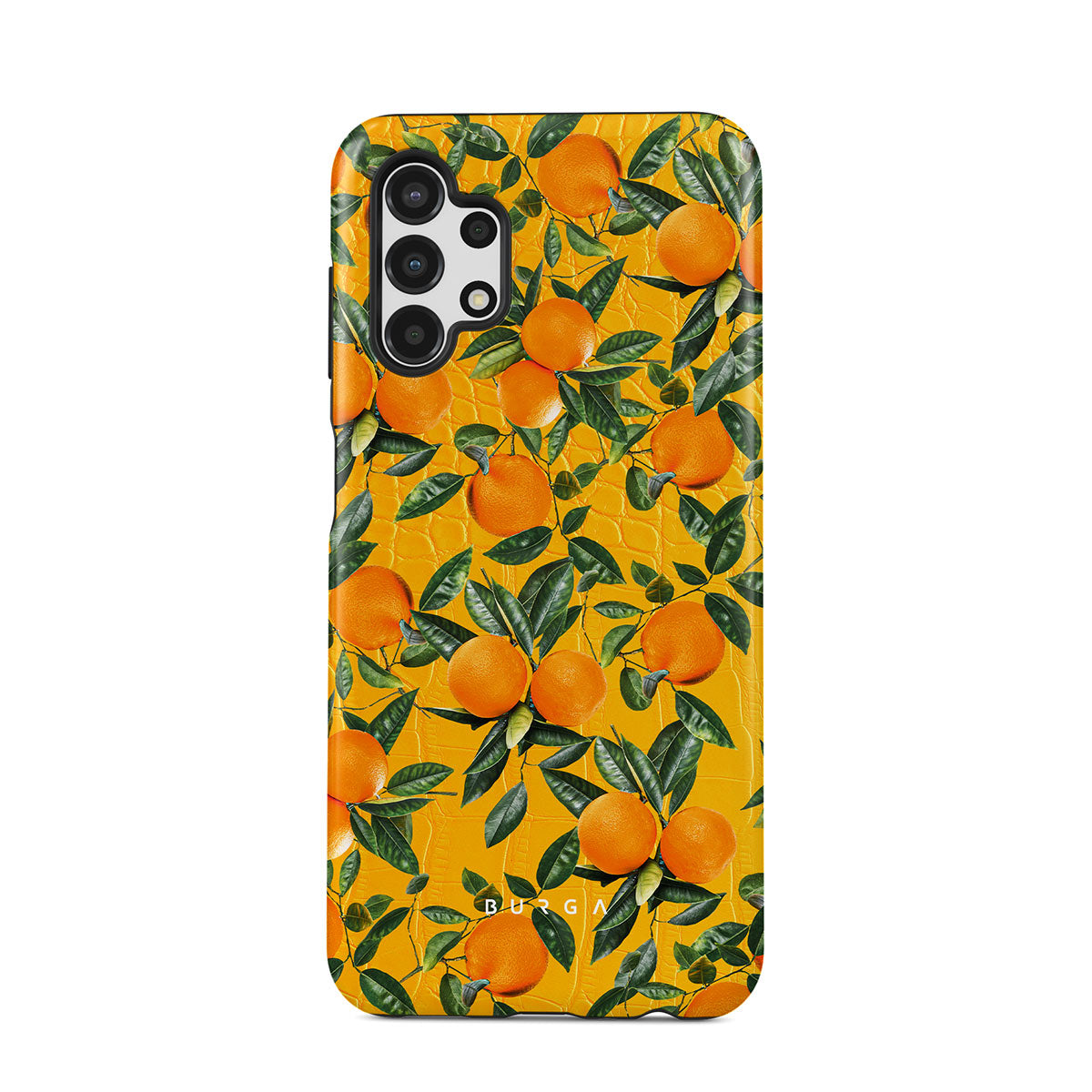 Orange Lemonade Samsung Galaxy A13 4G phone case showcases a unique combination of vibrant orange croco design with plenty of mouth-watering oranges on top. With this energetic design, protect your phone and keep your spirits up.