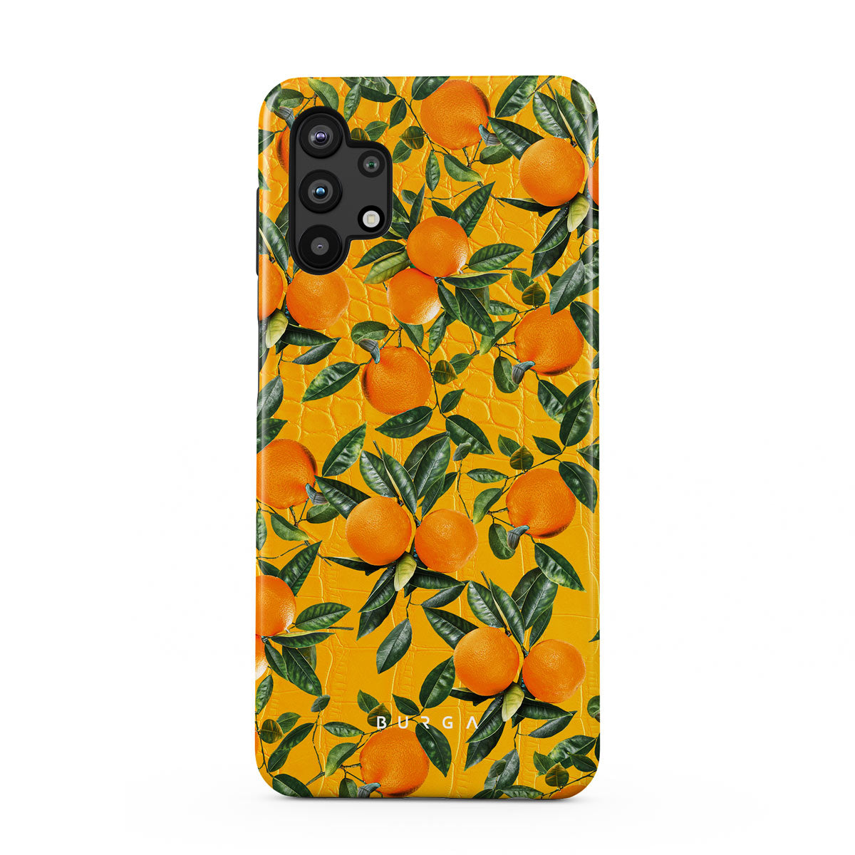 Orange Lemonade Samsung Galaxy A32 5G phone case showcases a unique combination of vibrant orange croco design with plenty of mouth-watering oranges on top. With this energetic design, protect your phone and keep your spirits up.