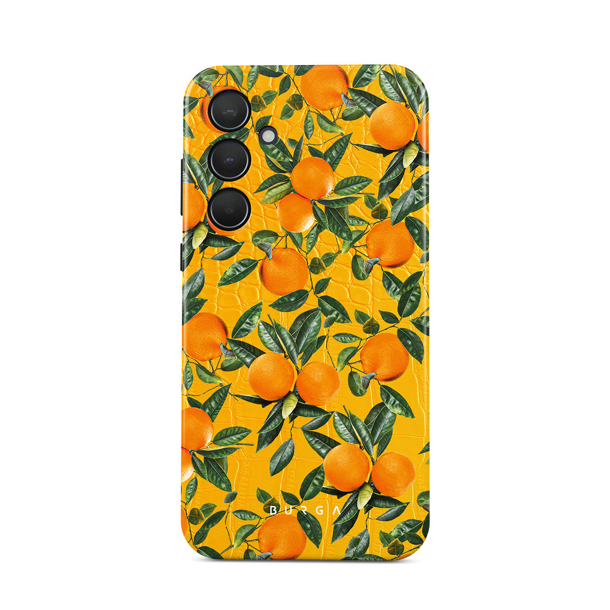 Orange Lemonade Samsung Galaxy A51 phone case showcases a unique combination of vibrant orange croco design with plenty of mouth-watering oranges on top. With this energetic design, protect your phone and keep your spirits up.