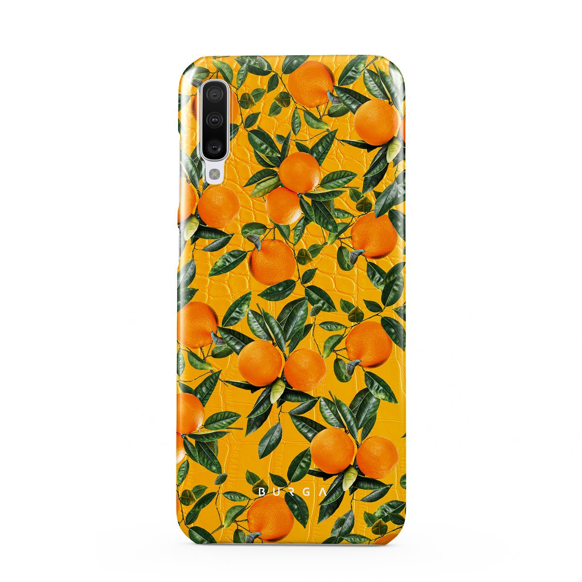 Orange Lemonade Samsung Galaxy A70 phone case showcases a unique combination of vibrant orange croco design with plenty of mouth-watering oranges on top. With this energetic design, protect your phone and keep your spirits up.