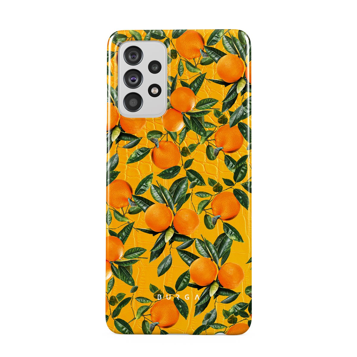 Orange Lemonade Samsung Galaxy A72 phone case showcases a unique combination of vibrant orange croco design with plenty of mouth-watering oranges on top. With this energetic design, protect your phone and keep your spirits up.
