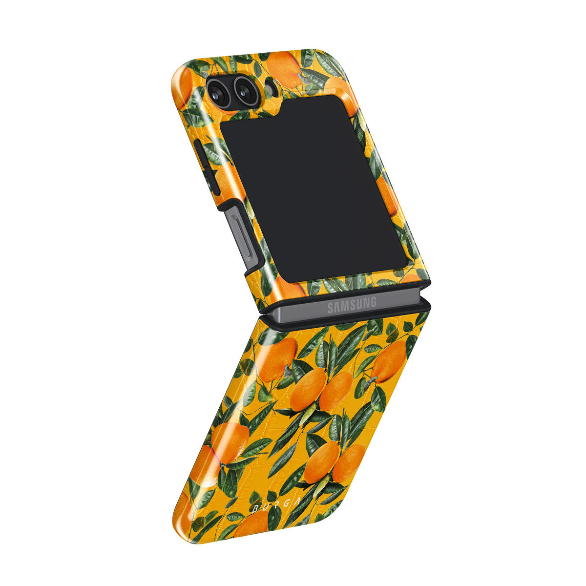 Orange Lemonade Samsung Galaxy Z Flip 5 phone case showcases a unique combination of vibrant orange croco design with plenty of mouth-watering oranges on top. With this energetic design, protect your phone and keep your spirits up.
