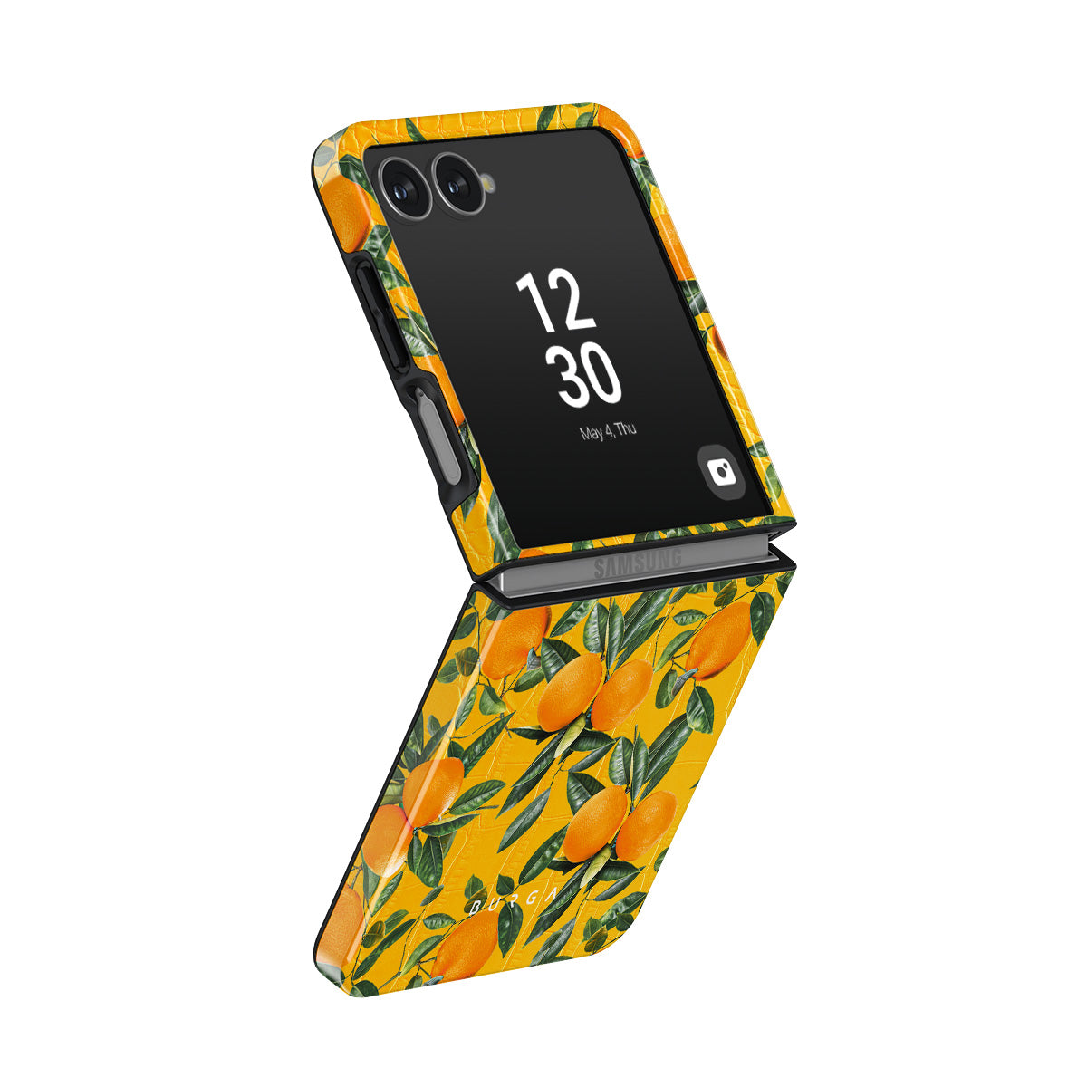 Orange Lemonade Samsung Galaxy Z Flip 7 phone case showcases a unique combination of vibrant orange croco design with plenty of mouth-watering oranges on top. With this energetic design, protect your phone and keep your spirits up.
