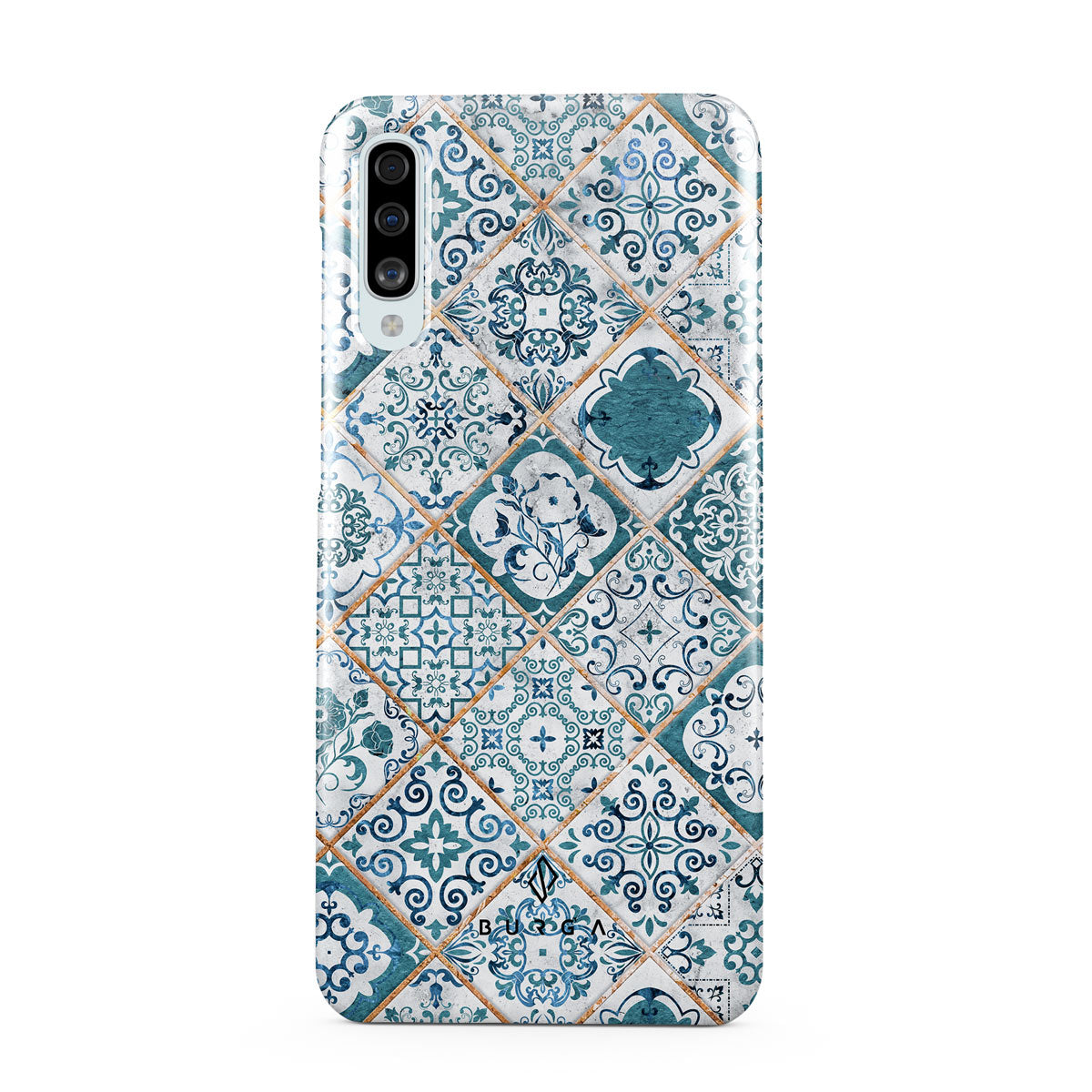 Tropical Oasis Samsung Galaxy A50 phone case is inspired by the timeless Moroccan ornaments. Such patterns can be seen all over the fashion industry and always add a touch of exotic. With this popular ornament, you can have a phone case that is both protective and trendy.