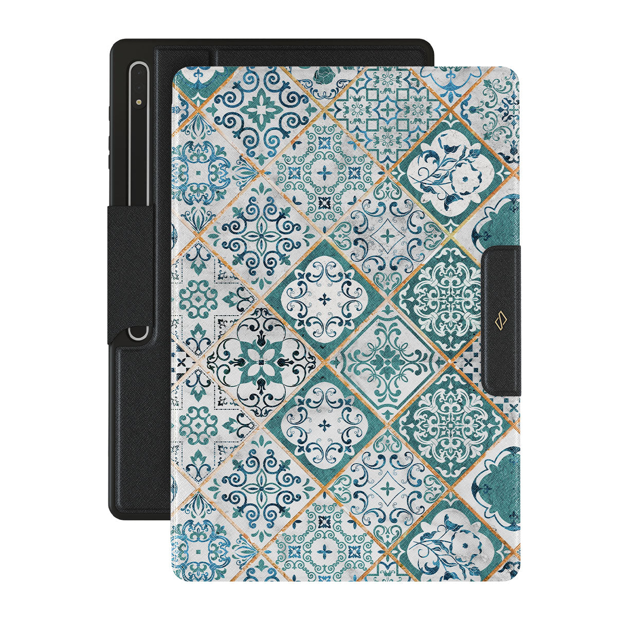 Tropical Oasis Samsung Galaxy Tab S8 Ultra folio case is inspired by the timeless Moroccan ornaments. Such patterns can be seen all over the fashion industry and always add a touch of exotic. With this popular ornament, you can have an Galaxy Tab case cover that is both protective and trendy.