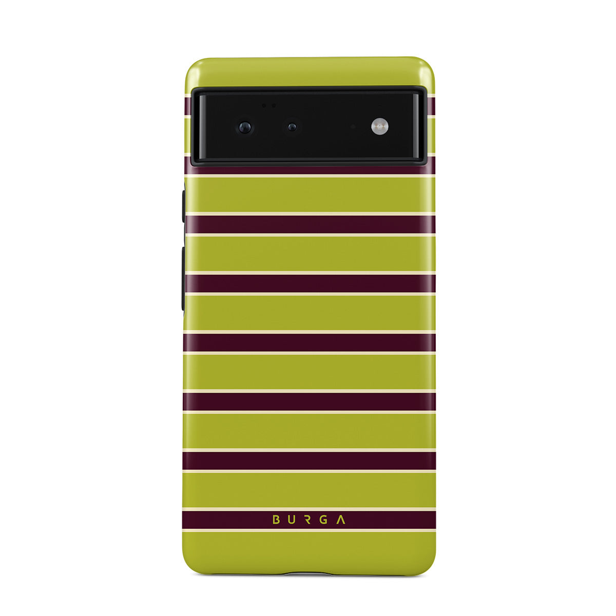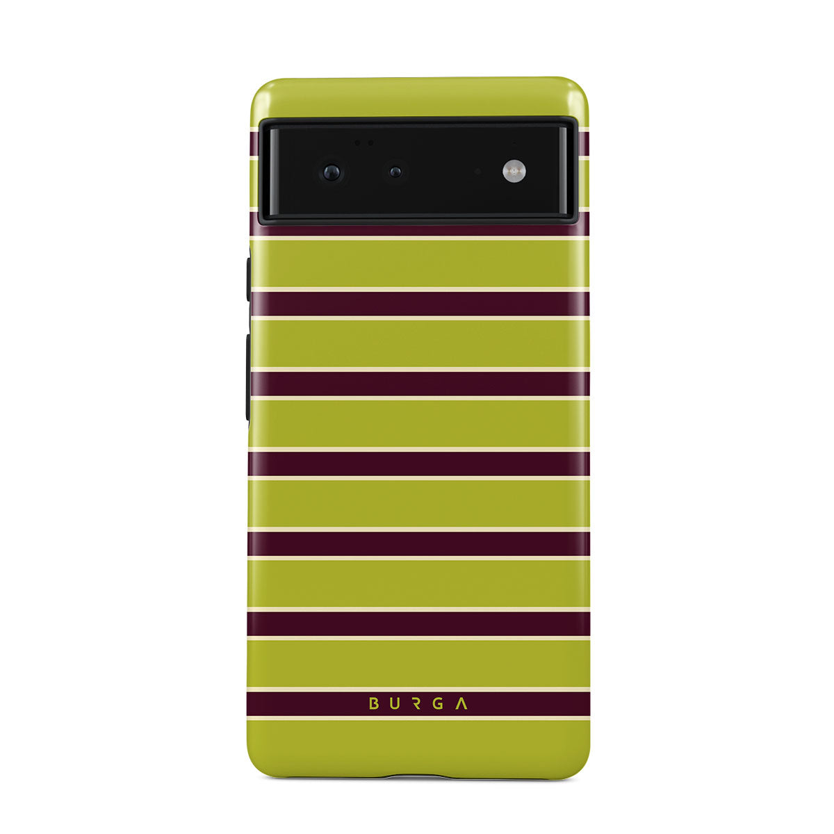 This design features: thick horizontal stripes in lime green and burgundy .