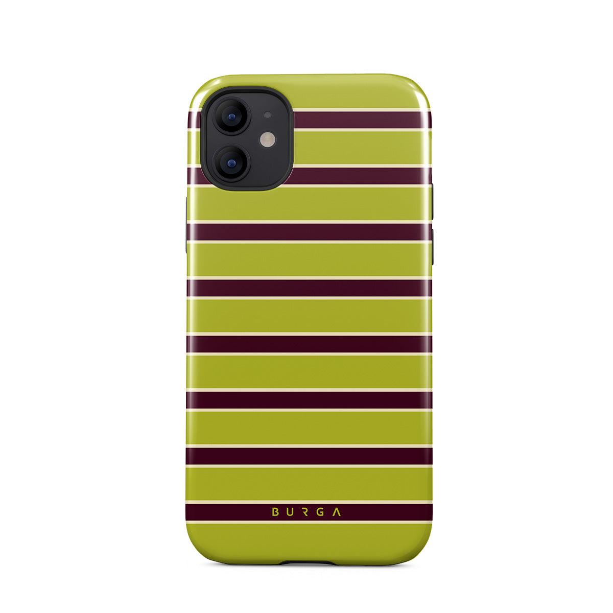 This design features: thick horizontal stripes in lime green and burgundy .
