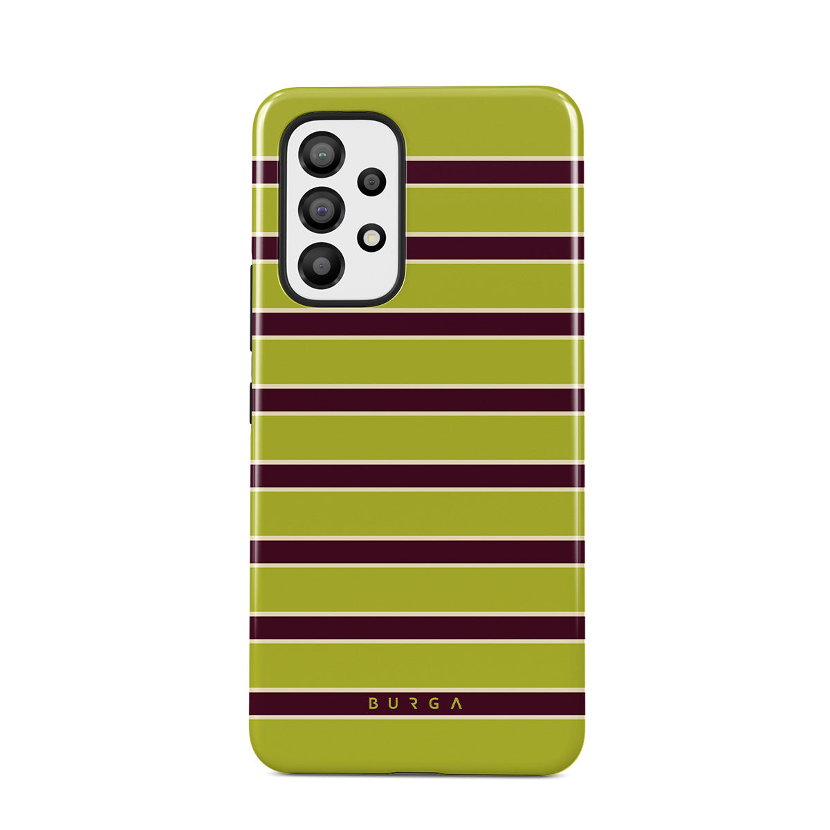 This design features: thick horizontal stripes in lime green and burgundy .