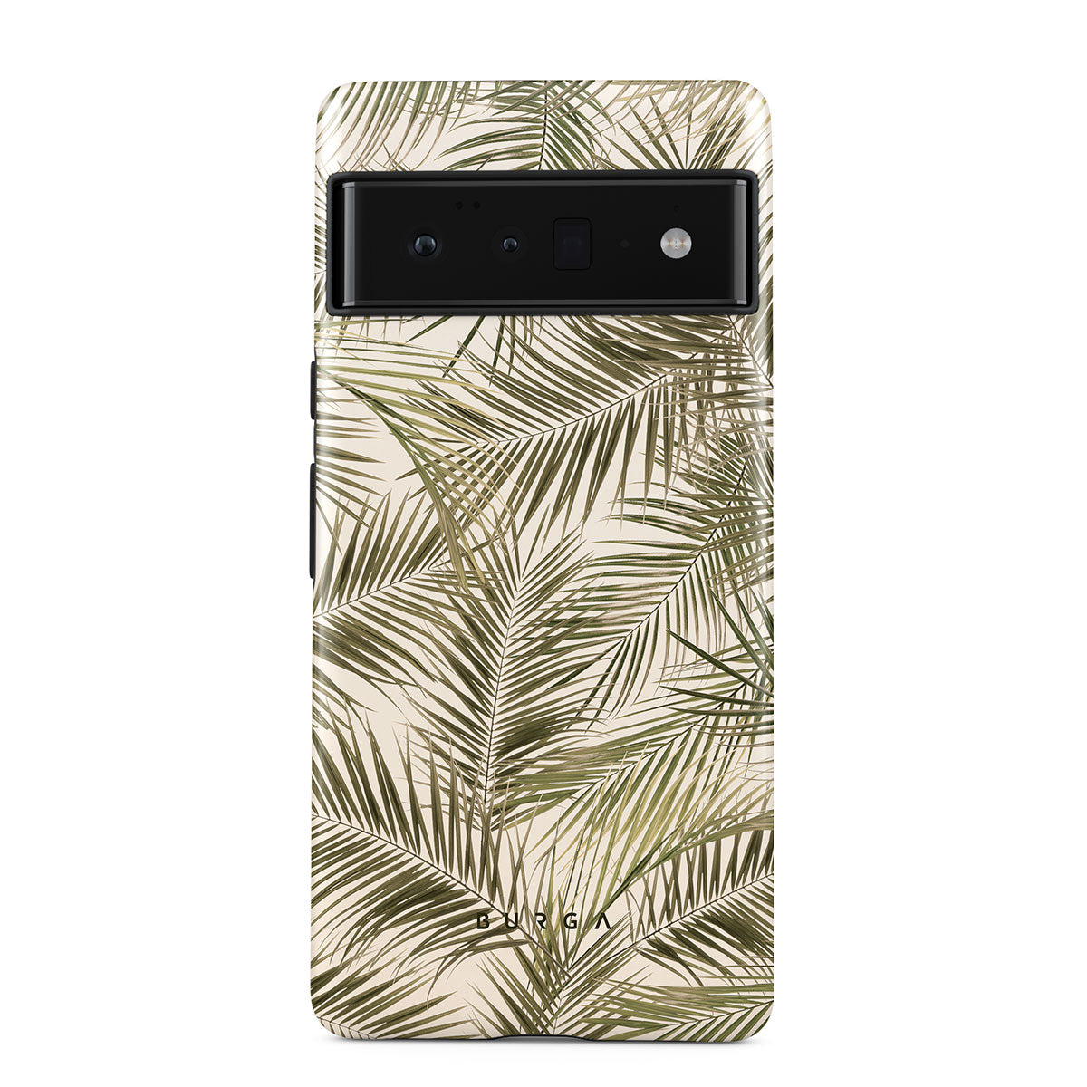 Some find happiness in the endless possibilities, and others find joy in the moments of relief. Can it be that you will find your happy place surrounded by palm leaves? Try our unique Google Pixel 6 Pro phone case design with bright palm leaves and add a statement to your style.