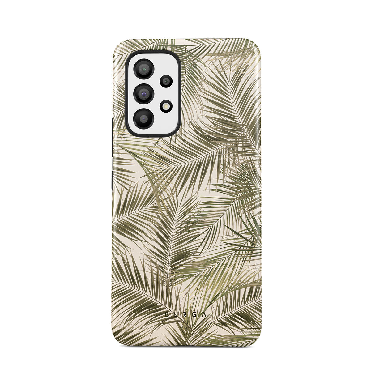 Some find happiness in the endless possibilities, and others find joy in the moments of relief. Can it be that you will find your happy place surrounded by palm leaves? Try our unique Samsung Galaxy A33 phone case design with bright palm leaves and add a statement to your style.