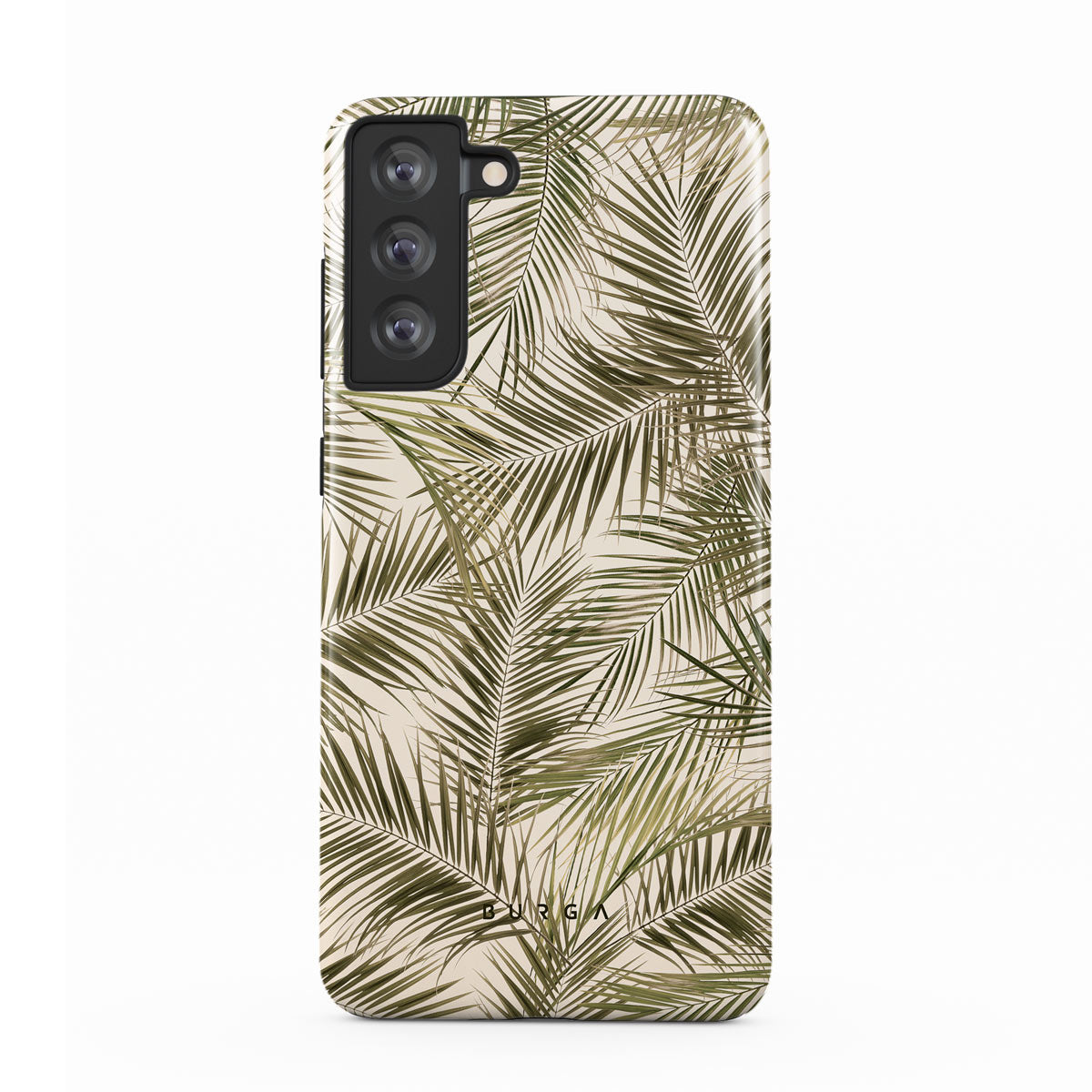 Some find happiness in the endless possibilities, and others find joy in the moments of relief. Can it be that you will find your happy place surrounded by palm leaves? Try our unique Samsung Galaxy S21 FE phone case design with bright palm leaves and add a statement to your style.