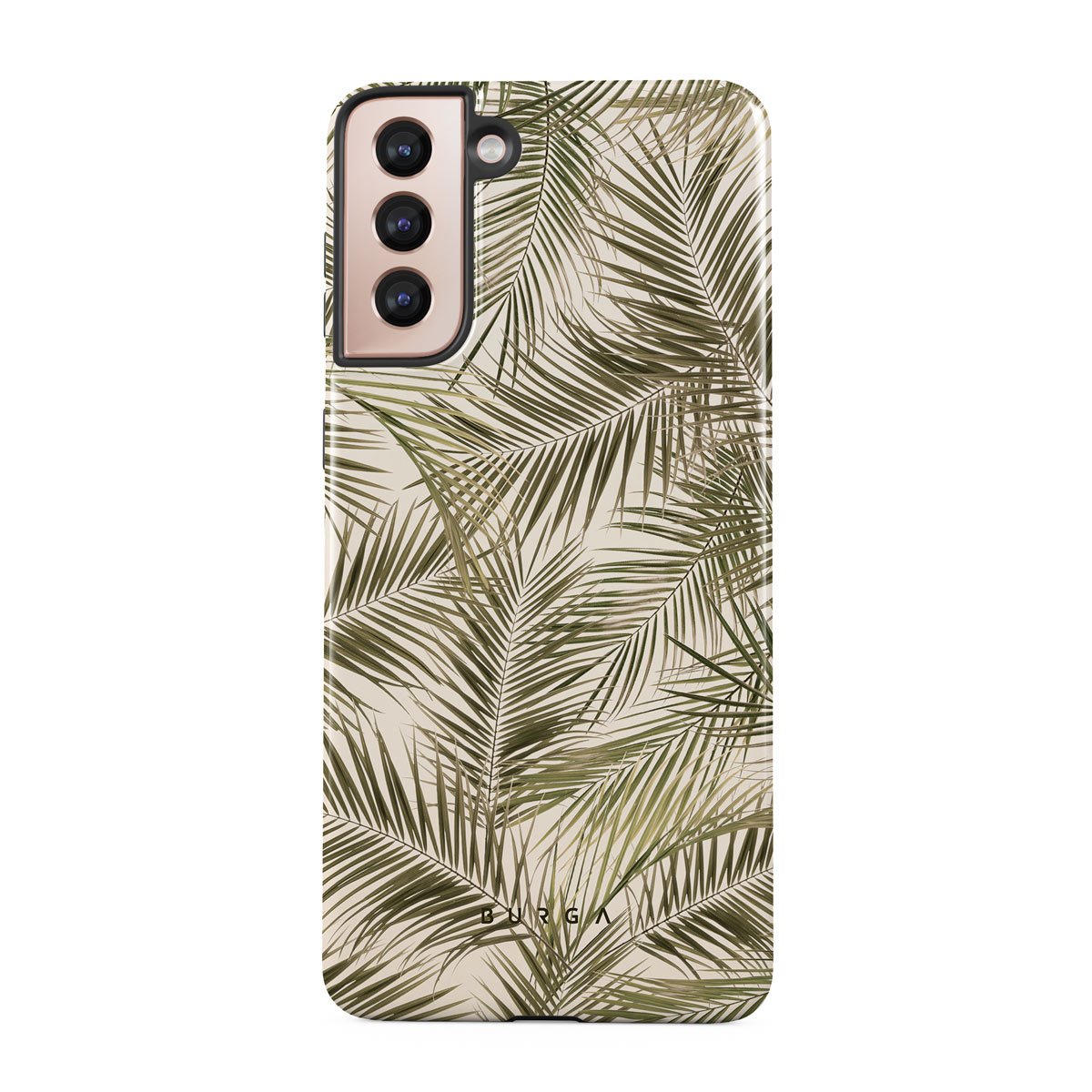 Some find happiness in the endless possibilities, and others find joy in the moments of relief. Can it be that you will find your happy place surrounded by palm leaves? Try our unique Samsung Galaxy S21 Plus phone case design with bright palm leaves and add a statement to your style.