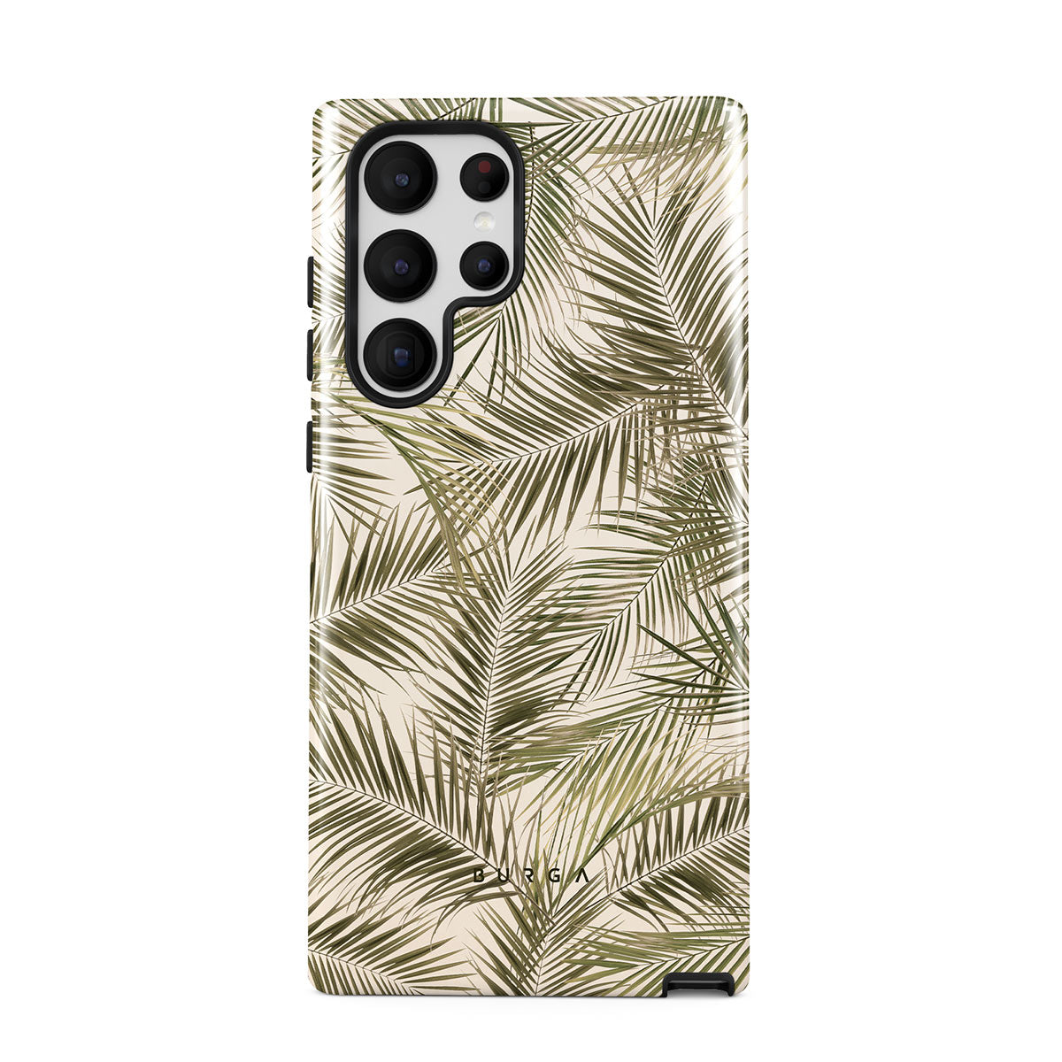 Some find happiness in the endless possibilities, and others find joy in the moments of relief. Can it be that you will find your happy place surrounded by palm leaves? Try our unique Samsung Galaxy S22 Ultra phone case design with bright palm leaves and add a statement to your style.