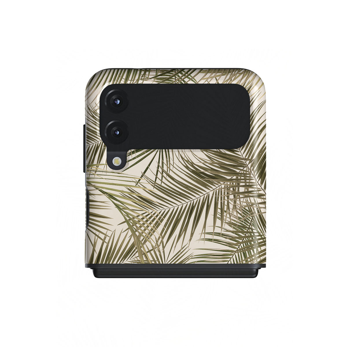 Some find happiness in the endless possibilities, and others find joy in the moments of relief. Can it be that you will find your happy place surrounded by palm leaves? Try our unique Samsung Galaxy Z Flip 3 phone case design with bright palm leaves and add a statement to your style.