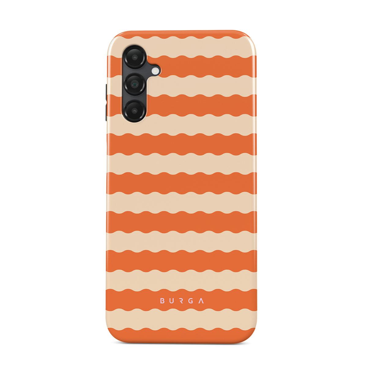 Unleash the tropical heat with the our Papaya design—a sizzling Samsung Galaxy A25 phone case that electrifies with fiery, wavy stripes of juicy papaya orange and smooth, creamy beige. Perfect for trendsetters craving a daring, sun-soaked style.