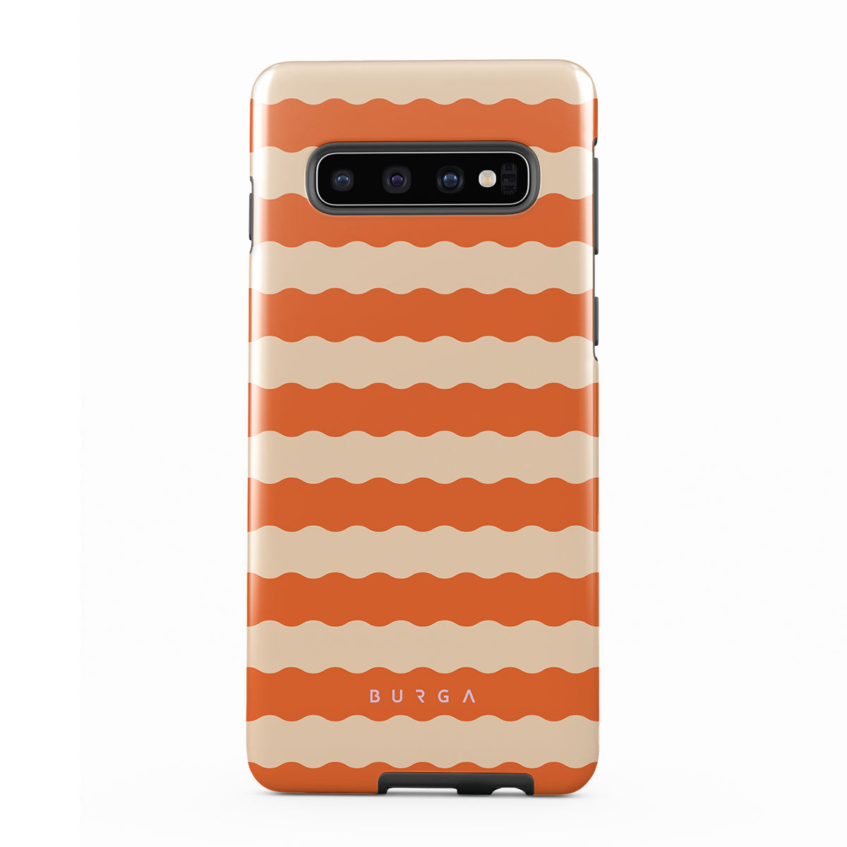 Unleash the tropical heat with the our Papaya design—a sizzling Samsung Galaxy S10 4G phone case that electrifies with fiery, wavy stripes of juicy papaya orange and smooth, creamy beige. Perfect for trendsetters craving a daring, sun-soaked style.