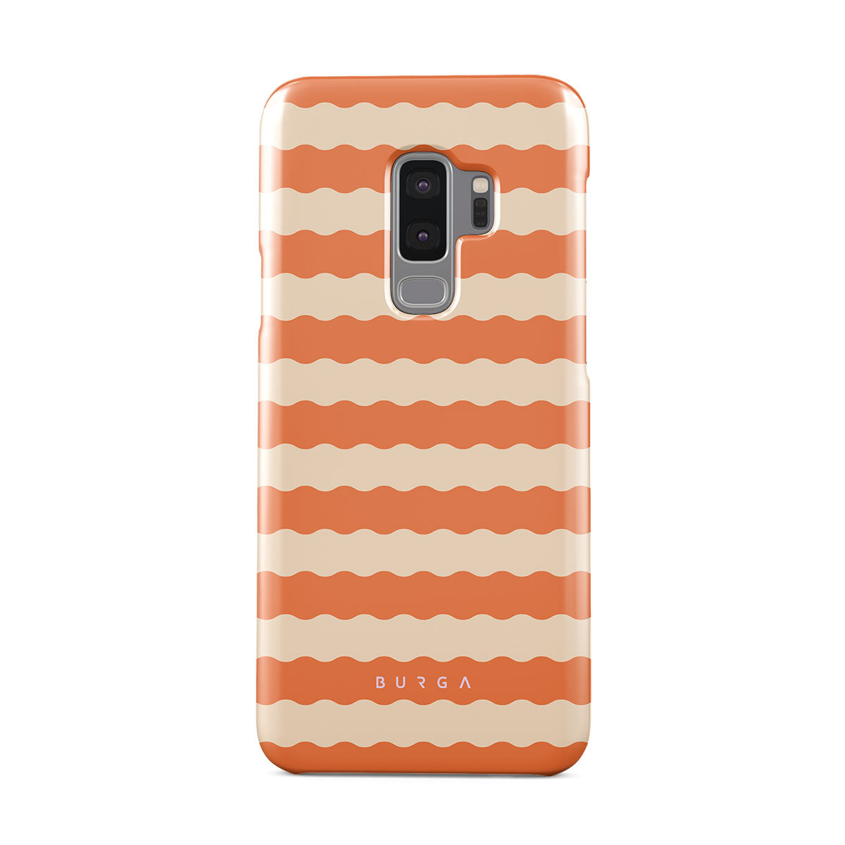 Unleash the tropical heat with the our Papaya design—a sizzling Samsung Galaxy S9 Plus phone case that electrifies with fiery, wavy stripes of juicy papaya orange and smooth, creamy beige. Perfect for trendsetters craving a daring, sun-soaked style.