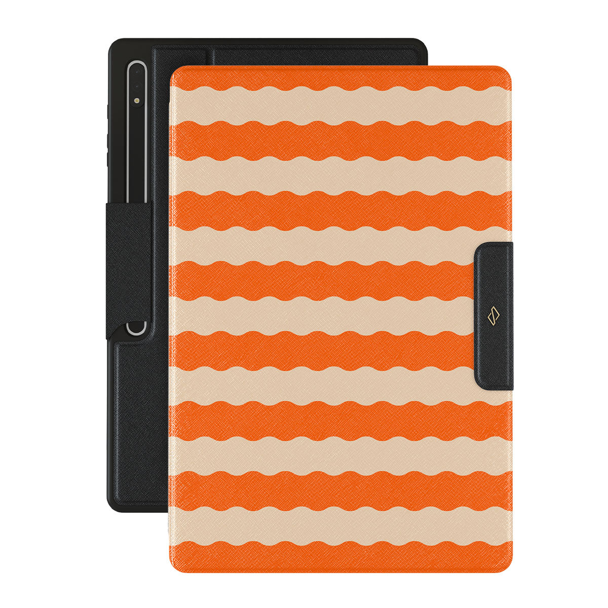 Unleash the tropical heat with the our Papaya design—a sizzling Samsung Galaxy Tab S8 Ultra folio case that electrifies with fiery, wavy stripes of juicy papaya orange and smooth, creamy beige. Perfect for trendsetters craving a daring, sun-soaked style.