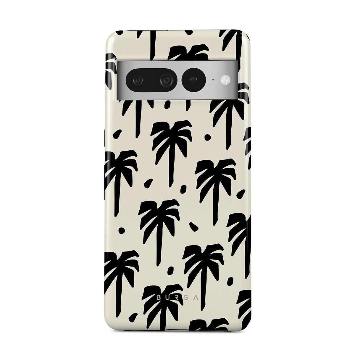 A peaceful haven right at your fingertips. The design contrasts black palm silhouettes against a calming light backdrop. Our Paraíso Google Pixel 7 Pro phone case is your passport to an everlasting tropical escape.