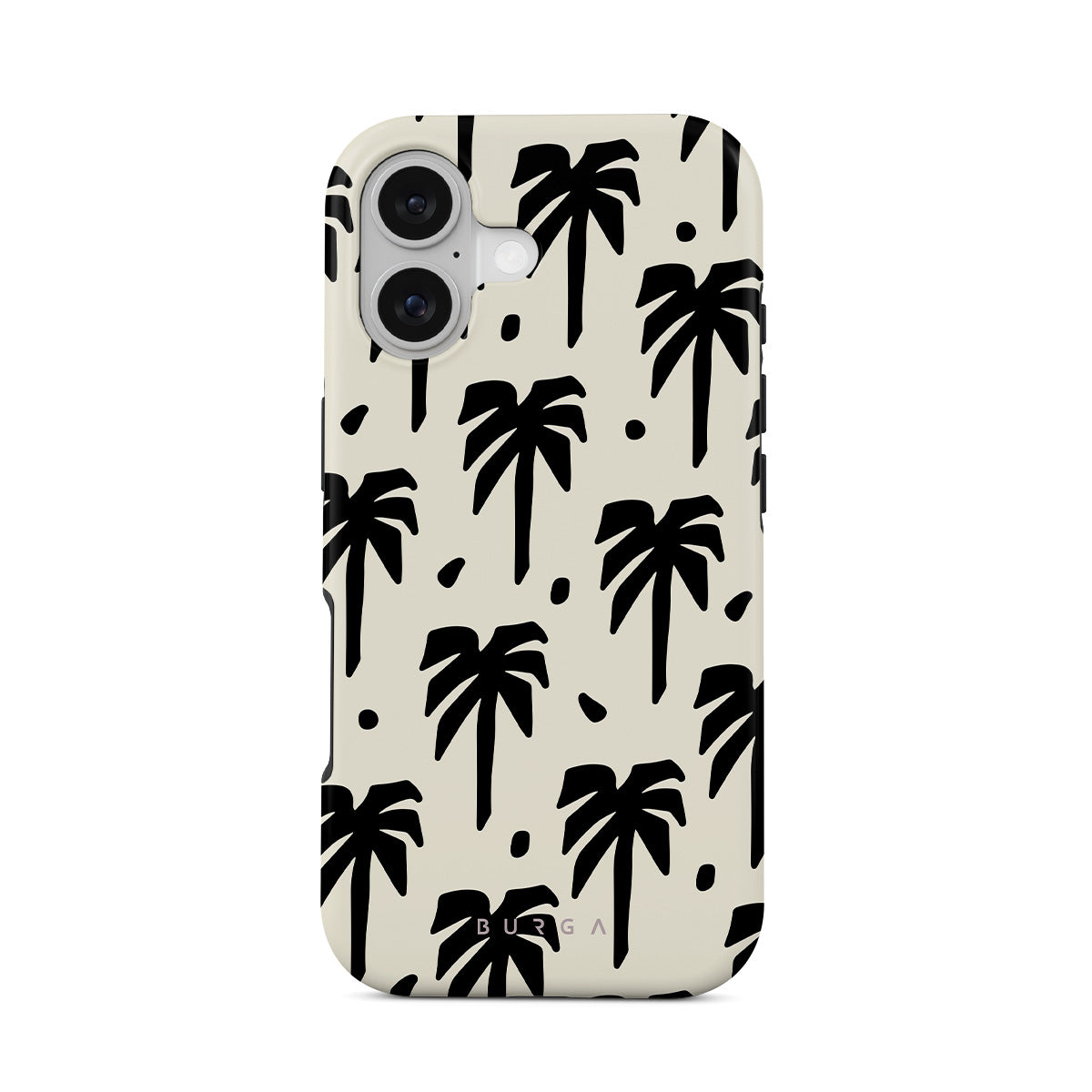 A peaceful haven right at your fingertips. The design contrasts black palm silhouettes against a calming light backdrop. Our Paraíso iPhone 17 phone case is your passport to an everlasting tropical escape.