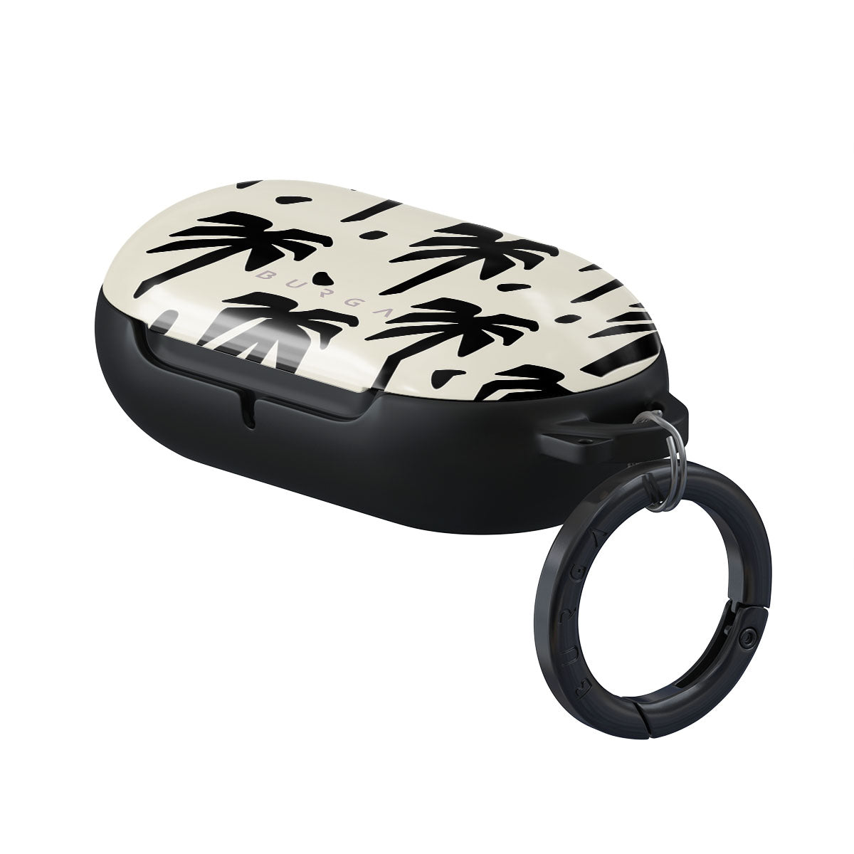 A peaceful haven right at your fingertips. The design contrasts black palm silhouettes against a calming light backdrop. Our Paraíso Samsung Galaxy Buds Plus case cover is your passport to an everlasting tropical escape.