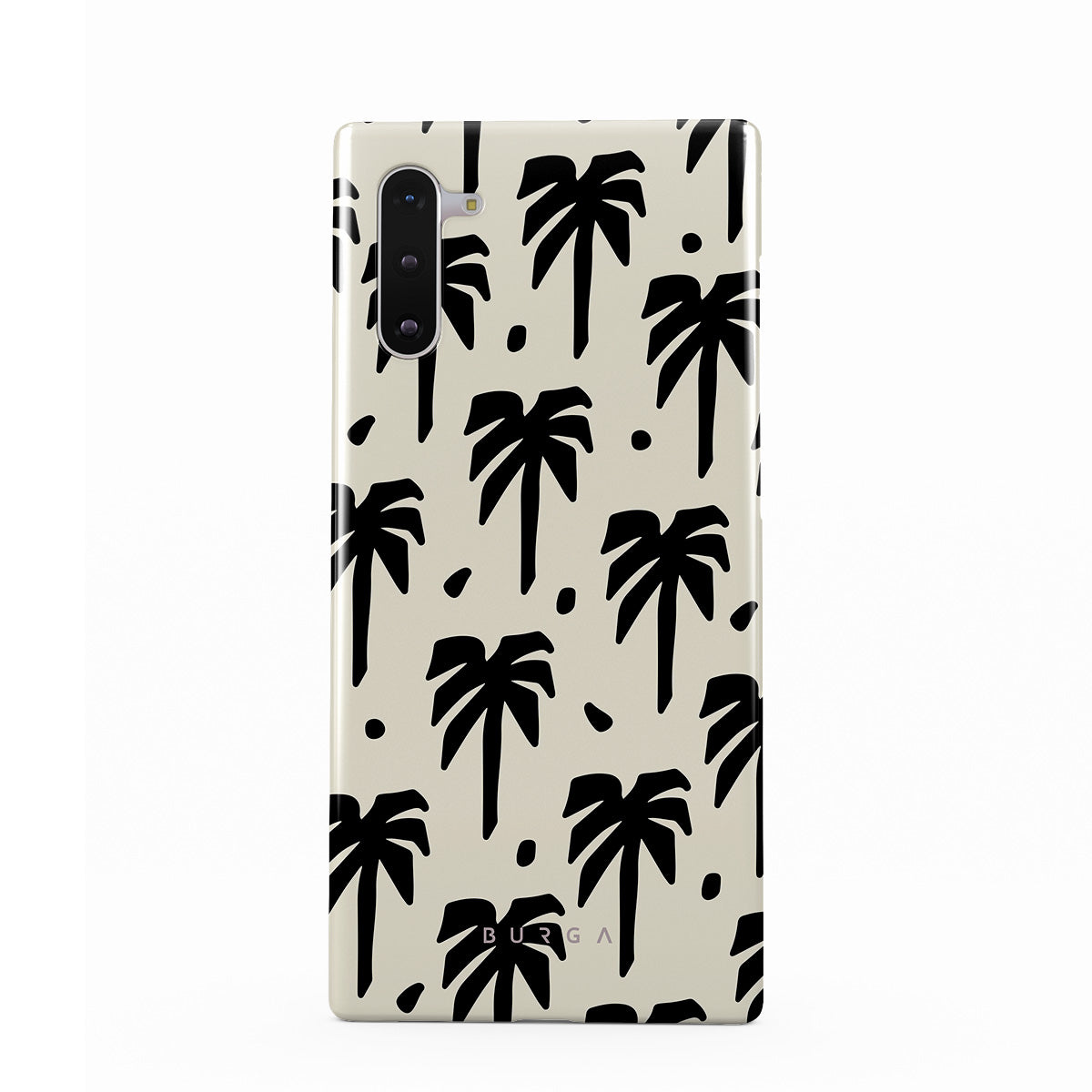 A peaceful haven right at your fingertips. The design contrasts black palm silhouettes against a calming light backdrop. Our Paraíso Samsung Galaxy Note 10 phone case is your passport to an everlasting tropical escape.